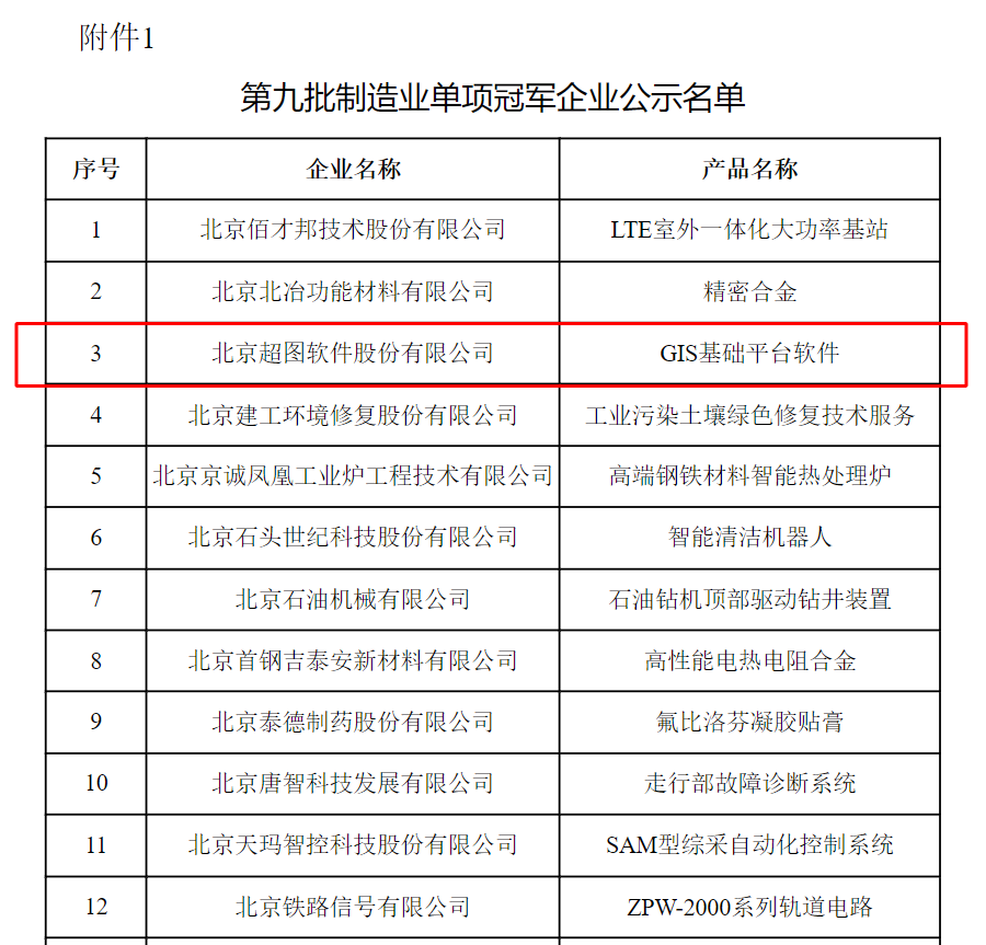 国家级认可!超图软件入选制造业单项冠军企业名单