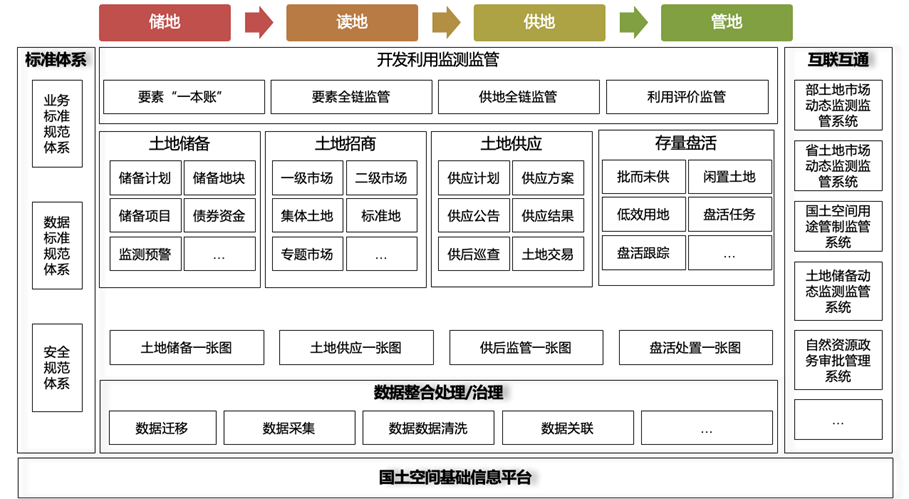 打造“1+1+N”的自然资源开发利用数字化解决方案,汇聚多源数据开展全路径数据治理,以国土空间基础信息平台为支撑,形成数据完整、准确、统一的自然资源开发利用一张图。搭建面向自然资源开发利用的土地储备、土地招商、土地供应全链监管、存量盘活以及开发利用监测监管的N个应用场景。以码衔接自然资源开发利用全过程,实现与部、省、市各级监测监管系统的互联互通,助推自然资源开发利用高效合理。